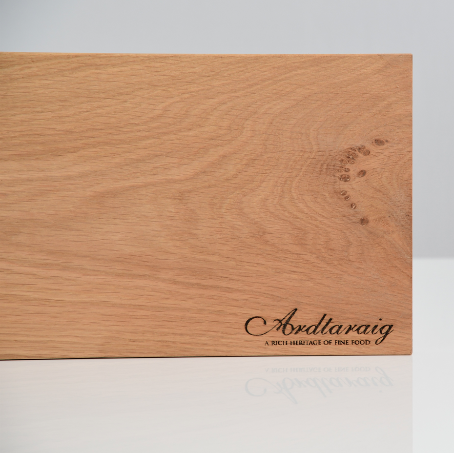 Hand Crafted Oak Serving Board Introduced in 2024, our exquisite Scottish Oak serving boards are meticulously handcrafted to elevate the presentation of your side of salmon. Each piece is elegantly engraved with the timeless Ardtaraig crest, creating a refined presentation board designed to be cherished for years to come. More than a serving board, it is a statement of quality and craftsmanship—available to purchase on its own or as part of our exclusive side-and-board collections. |