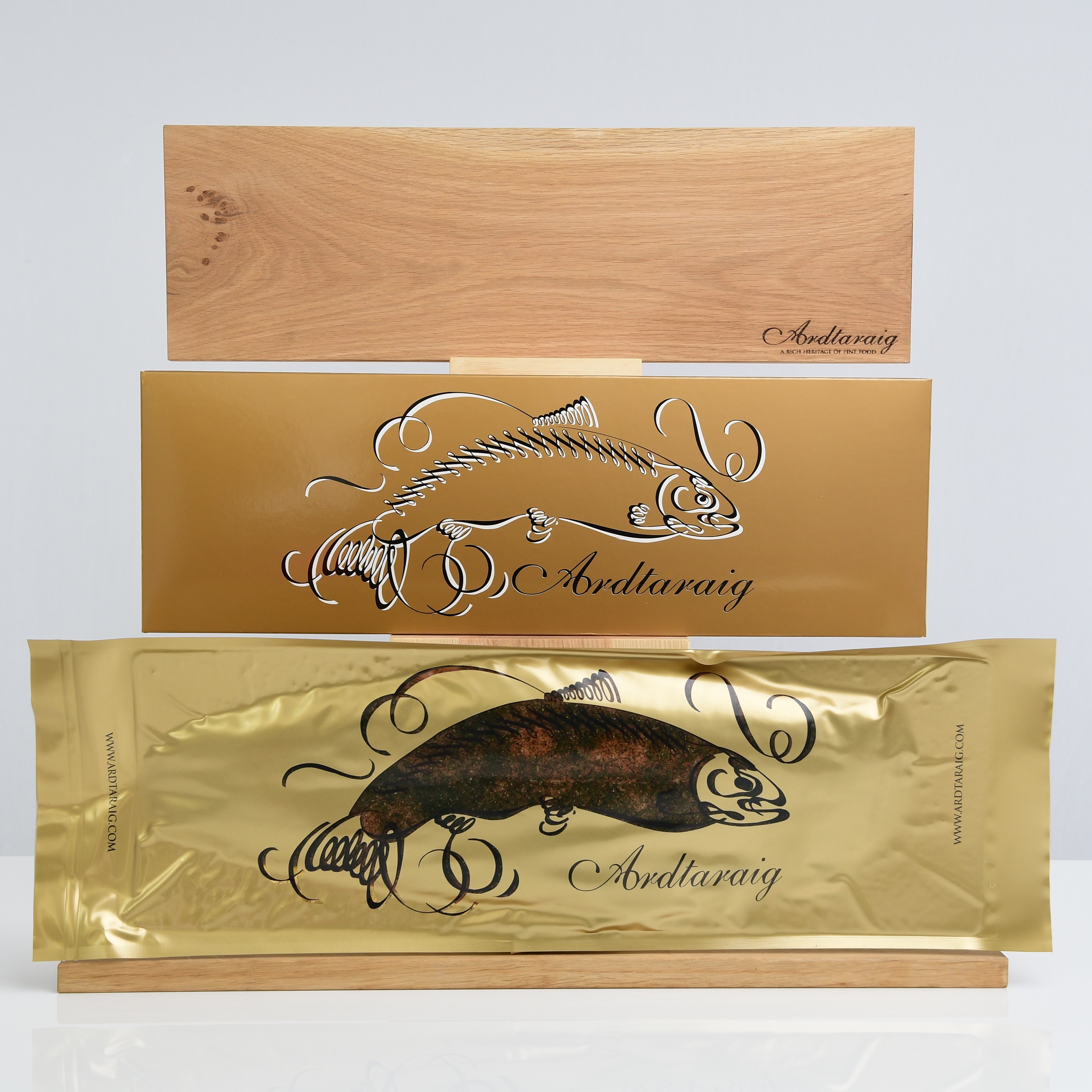 Hand Crafted Oak Serving Board Introduced in 2024, our exquisite Scottish Oak serving boards are meticulously handcrafted to elevate the presentation of your side of salmon. Each piece is elegantly engraved with the timeless Ardtaraig crest, creating a refined presentation board designed to be cherished for years to come. More than a serving board, it is a statement of quality and craftsmanship—available to purchase on its own or as part of our exclusive side-and-board collections. |