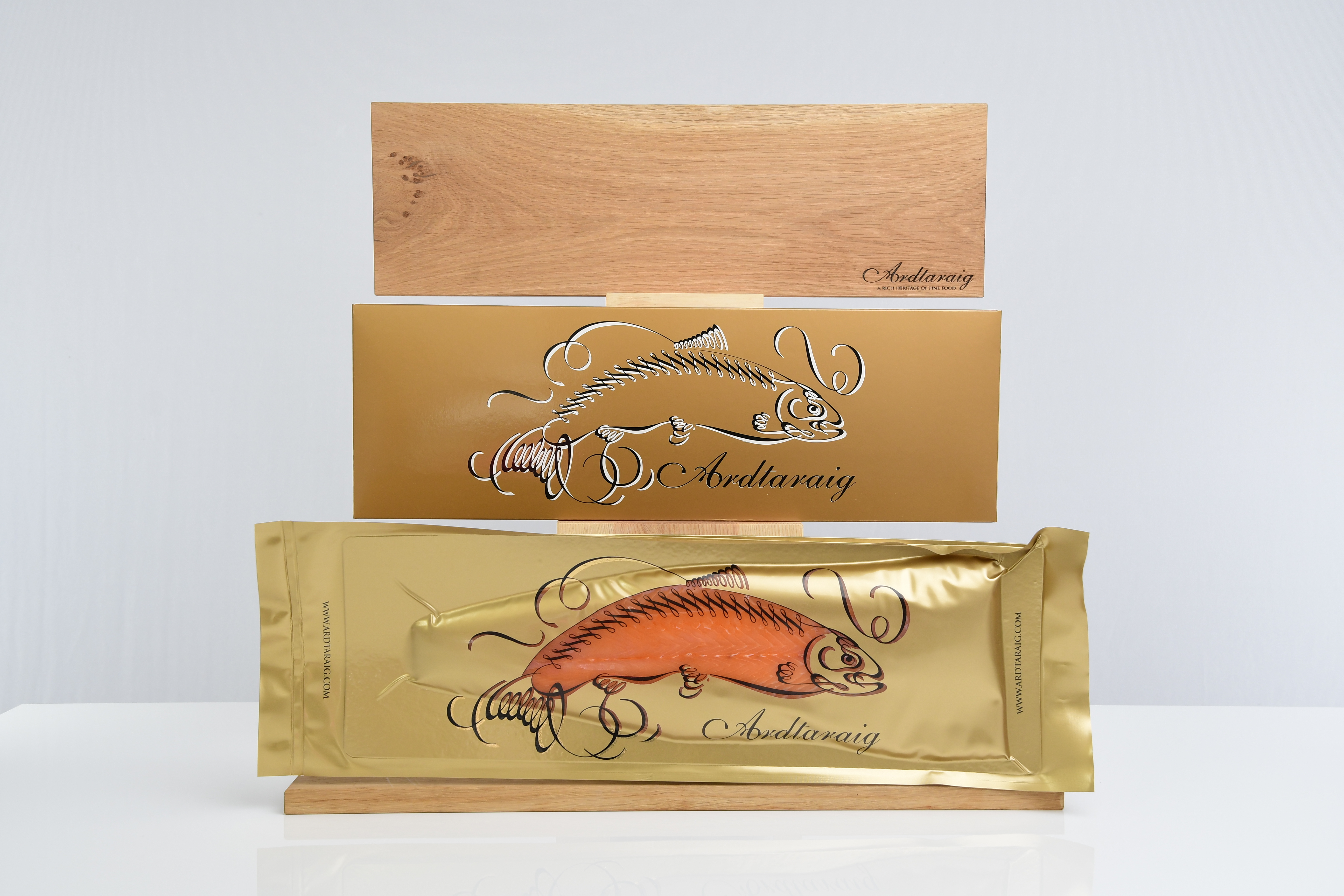 Hand Crafted Oak Serving Board Introduced in 2024, our exquisite Scottish Oak serving boards are meticulously handcrafted to elevate the presentation of your side of salmon. Each piece is elegantly engraved with the timeless Ardtaraig crest, creating a refined presentation board designed to be cherished for years to come. More than a serving board, it is a statement of quality and craftsmanship—available to purchase on its own or as part of our exclusive side-and-board collections. |