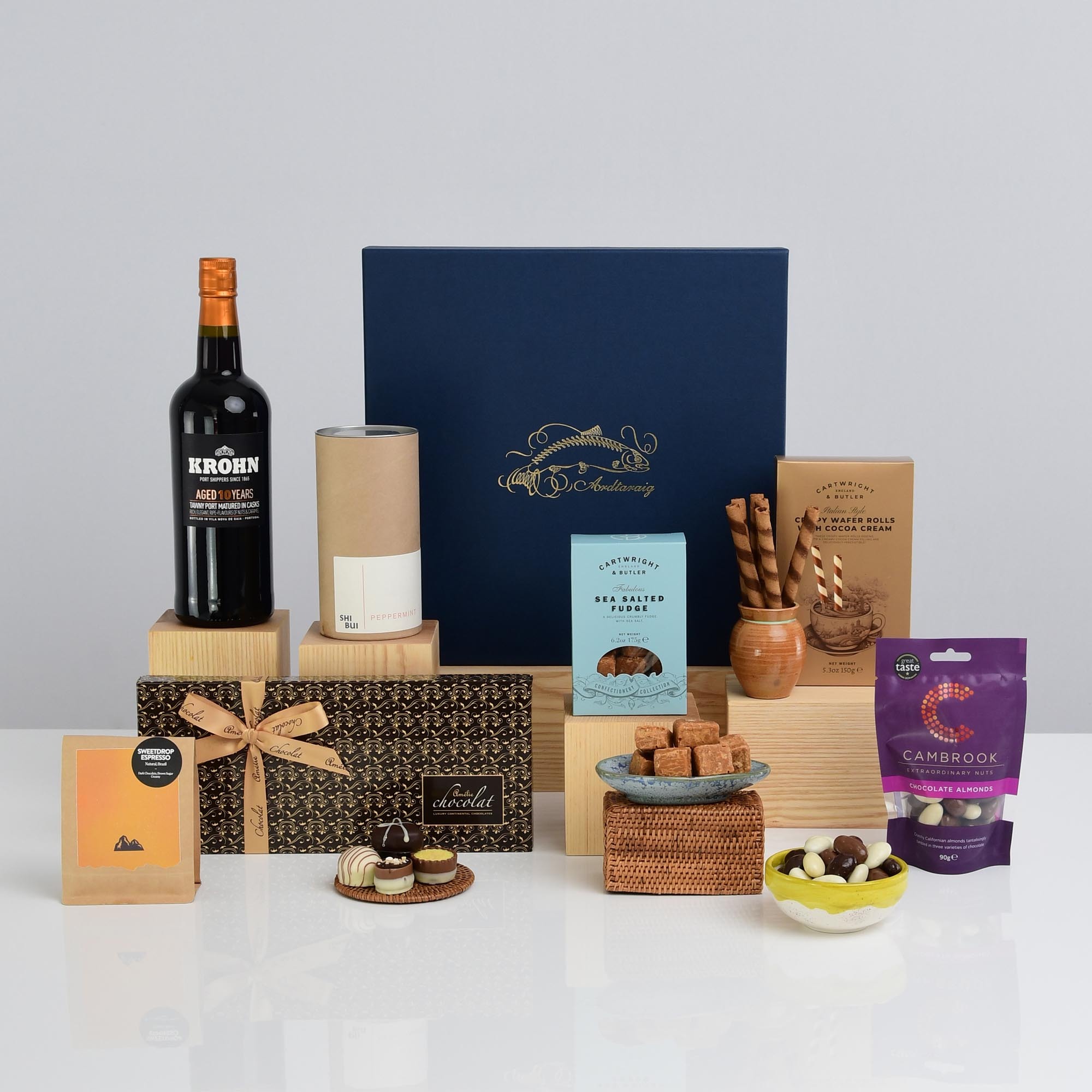 Contents: Cairngorm Coffee Sweetdrop Hand Roasted for Cafetiere 100g   Shibui Peppermint Tea Tube (15 Pyramids)  Love Cocoa 21 Patisserie Chocolate Truffle Selection Box 230g Cartwright & Butler Sea Salted Fudge...