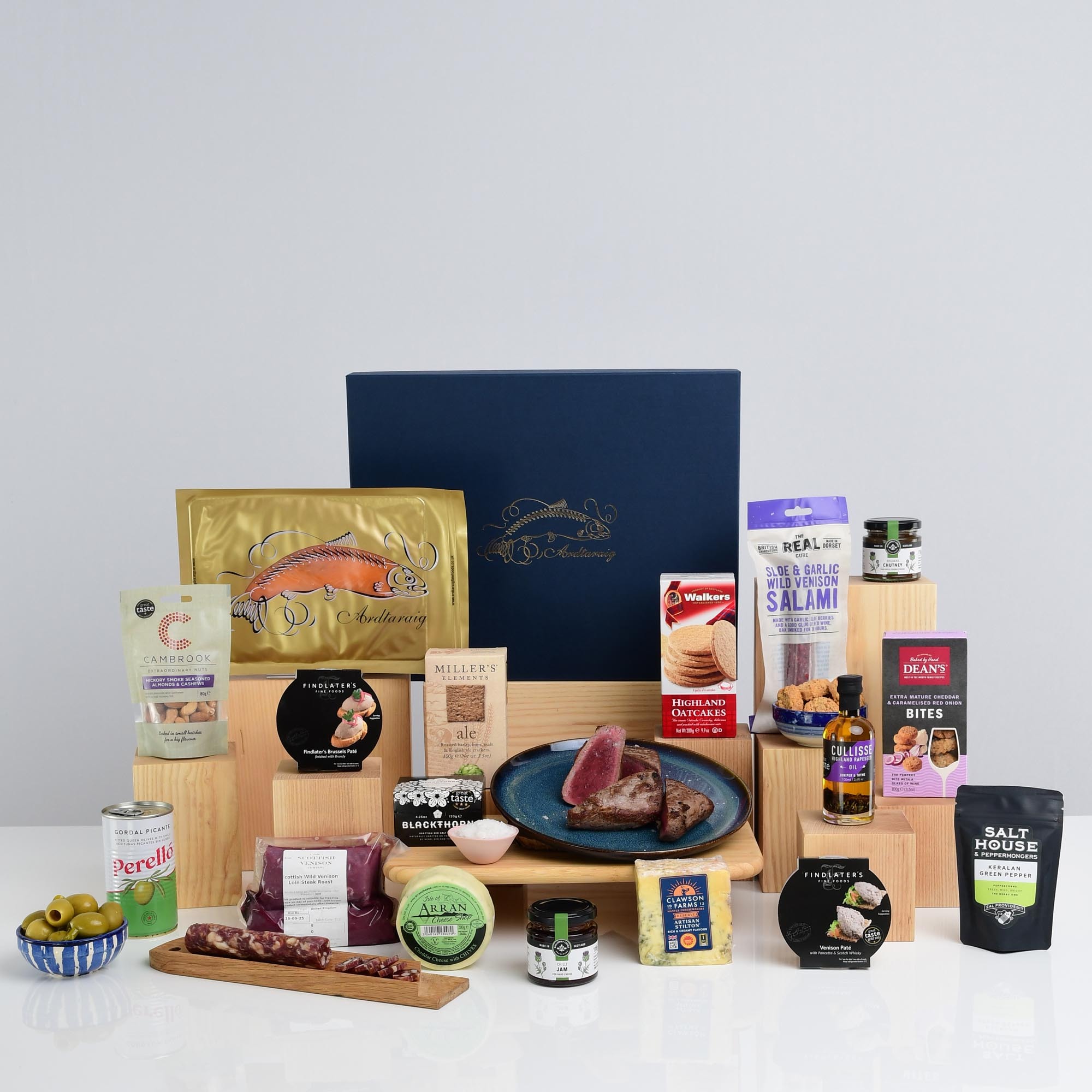 Contents: Ardtaraig Traditional Smoked Salmon 200g Ardtaraig Traditional Cured Scottish Gravadlax 200g Ardtaraig Smoked Scottish Rainbow Trout 200g Findlaters Chicken Liver Paté with Port & Brandy 120g Findlaters Duck...