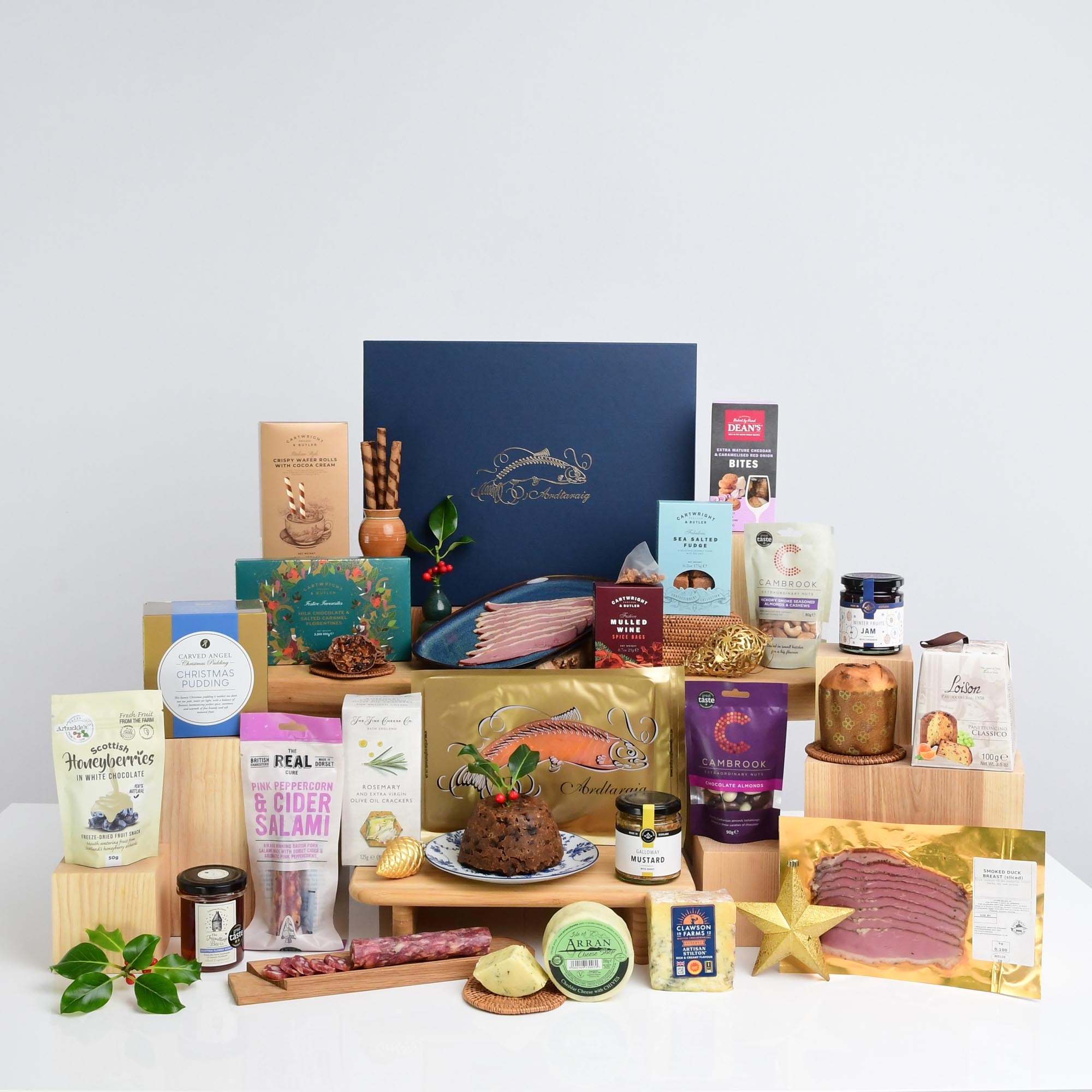 Contents: Ardtaraig Traditional Smoked Salmon 100g Arran Cheese Smoked Mature Cheddar Wax Truckle 200g Findlaters Duck Paté with Apricots Poached in Cointreau 120g Walkers Highland Oatcakes 280g Galloway Lodge Rhubarb Chutney...