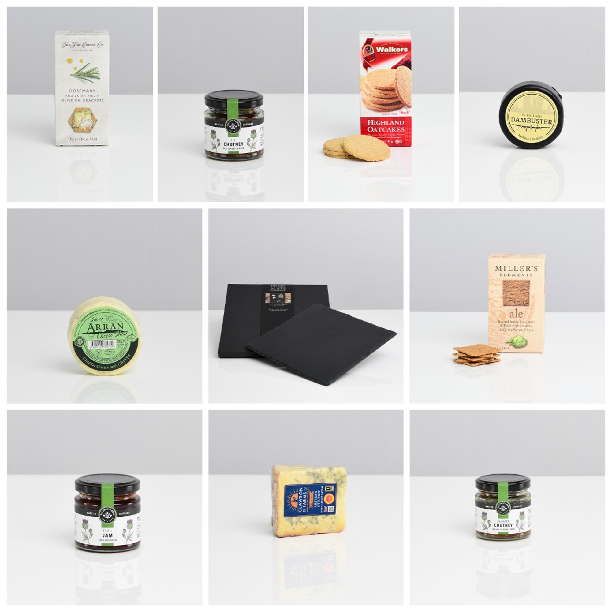 The Cheese Board Indulge in the ultimate savoury experience with our beautifully curated cheese board hamper a luxurious gift that’s as impressive to give as it is to receive. Brimming with irresistible flavours and gourmet delights, this box brings together the finest British cheeses, artisan crackers, and hand-crafted condiments, all elegantly presented with a stunning Scottish slate serving board for that perfect finishing touch. |