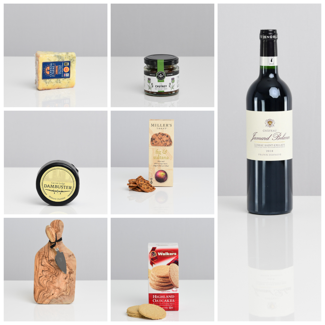 Red Wine & Cheese Gift Box You’ve got an exceptional bottle of St Emilion, a moreish selection of cheese, biscuits, our favourite fig chutney and a beautiful olivewood cheese board and knife set included. Bound to impress those discerning foodies in your life. |